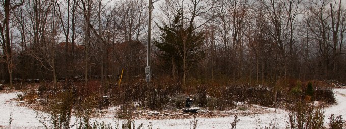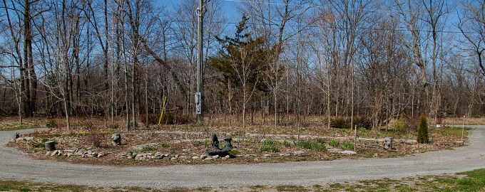 When our house was finally being built in 2014, I asked the excavators to finish the driveway by circling it around halfway up the property, about where the house would go, thereby creating a garden island. About half the island was buckthorn, red twig dogwood, sumac and small trees (basswood, maple, ironwood, juniper) and the other half was grass, where we parked and lived in a trailer while the house was built. My plan, after the trailer was moved, was to make the entire island one large micro garden.