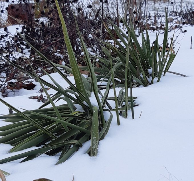 The Yucca certainly isn’t native here but survives our winters with no great difficulty. Adds a bit more colour to the drab winter landscape.