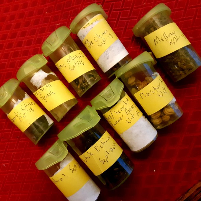 4 – Indoors, today, going through the seeds I collected last fall. So happy I, for once, labelled them at the time of harvest. These pill containers make a perfect storage container for dry seeds. Lots of lupin seeds…. many will go to the Picton Seedy Saturday seed exchange table next month.