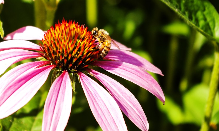 The first Monday in August is a holiday in most of Canada – different provinces call it different things, but really, it’s just an excuse for a long weekend in the middle of summer. Any why not? It’s hot, it’s sunny, our winters are long and cold…It’s a perfect weekend for camping, hiking, cycling, eating and, of course, gardening. Even the bees love this time of year. I have two hives at the back of the property this year (wrote about it a few weeks ago here), and the bees were out in force yesterday, gathering honey and nectar from just about every flower they could find. Here are some examples: