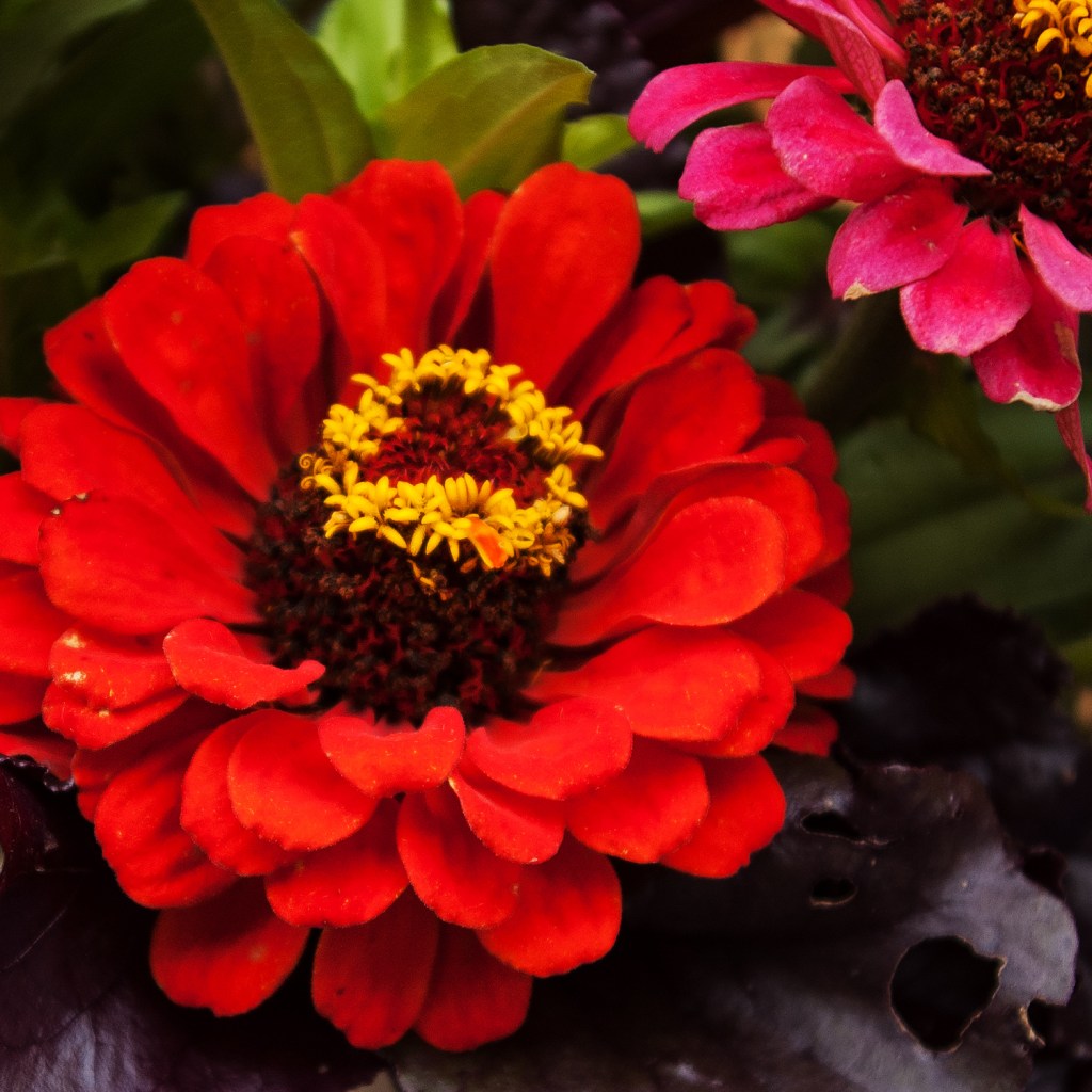Oh that beetroot foliage works wonderfully with those bright zinnias – they are really zingy and having had a small success with zinnias this year I need to choose my varieties carefully for next year, as they were all shades of pink this time round. Thanks for sharing yours