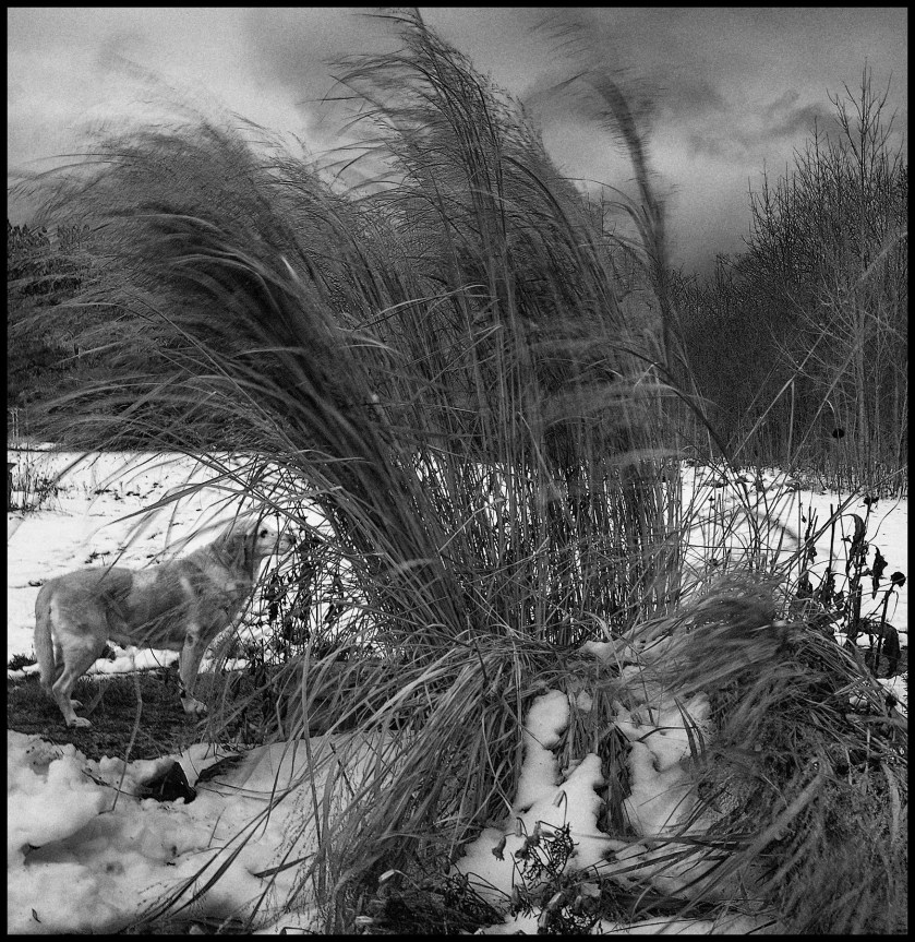 Oh, that looks cold! No wonder your dog is standing in the lee out of the wind. ๐