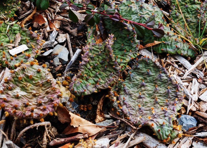 3: And this is what a Prickly Pear Cactus (Opuntia humifusa) looks like in the winter. Native to the shores of Lake Erie – with its sandier, faster draining soil, a few hundred kilometre south and west of me. I’m hoping it survives the winter in my heavy wet clay soil….