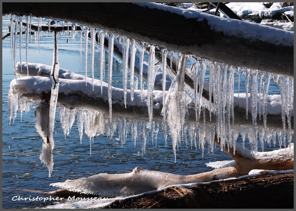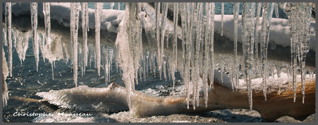 The icicles had formed the night before, when the wind was strong and sprays of lake water washed over the beach and the fallen tree.