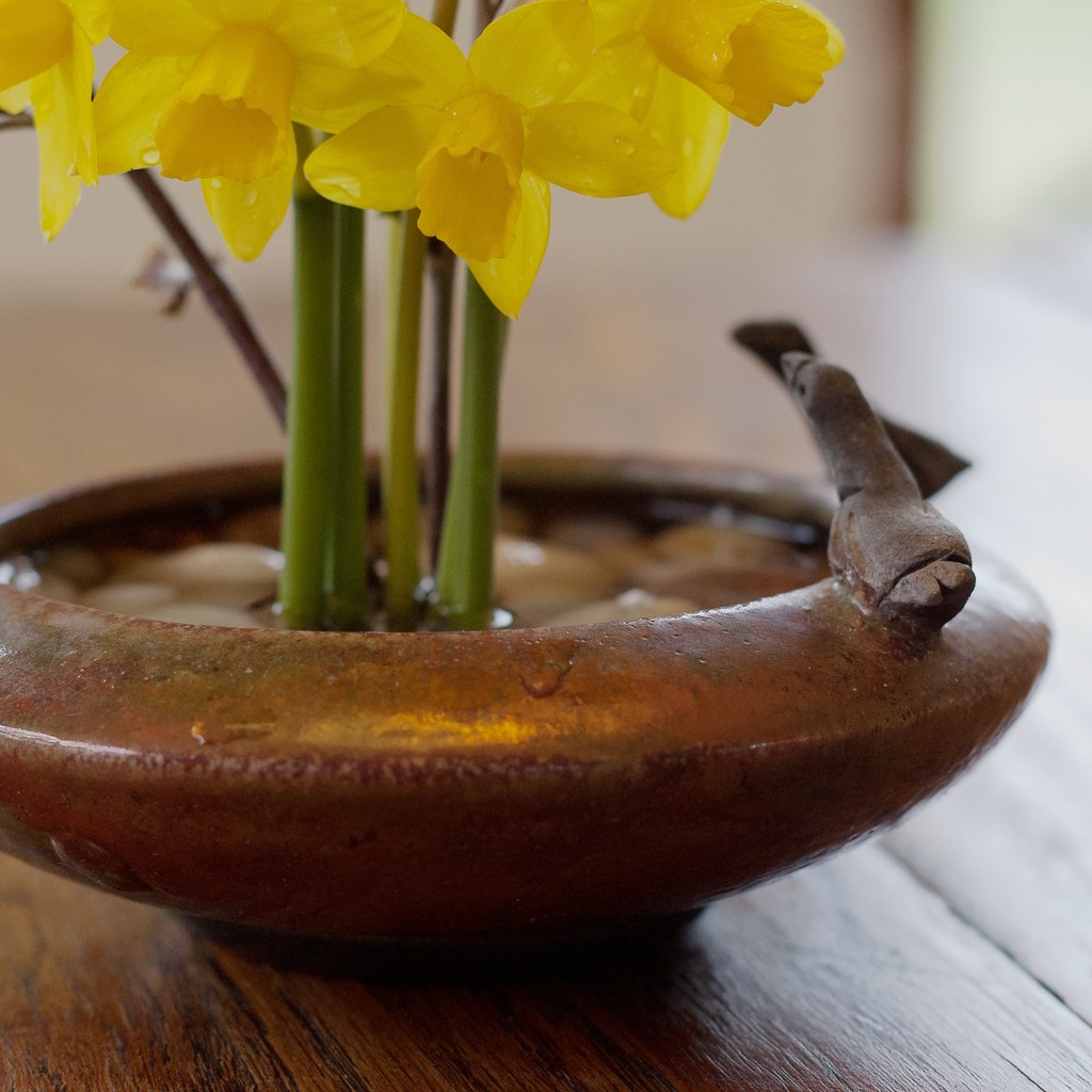 The vase is a small Raku piece we’ve had for a while. Perfect for these small blooms.