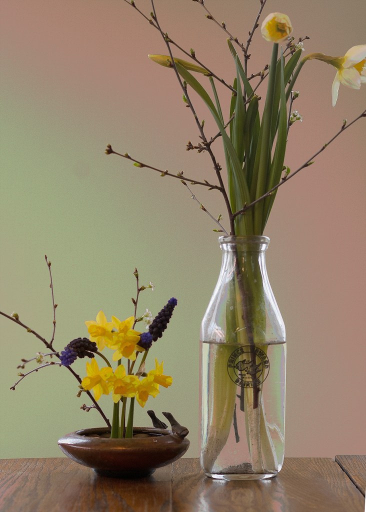 3. I love that ikebana style vase! The tall daffs are pretty too. I had never thought about it before, but you are right – the smaller dwarf narcissi seem to come back reliably each year. I do the same: buy small pots of them for late winter cheer at the front door, and then plant them out for the following year. πŸ˜ƒ