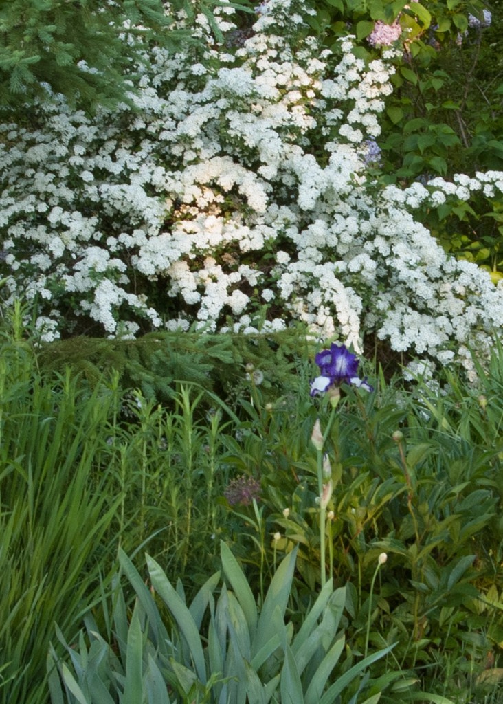 I have a row of these white, re-blooming Iris – a friend gave me a few clumps four years ago and they have spread incredibly quickly. I’ll be lifting and dividing and sharing after this flush of flowers fades – although I’m told the best time for planting Iris is the early fall.