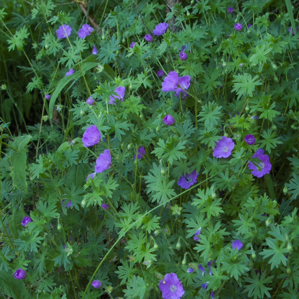 2. Wonderfully vivid shade of geranium, whatever its cultivar. My “lawn” had just stopped producing buttercups, daisies, and Black-eyed Susans. Time for the mower.