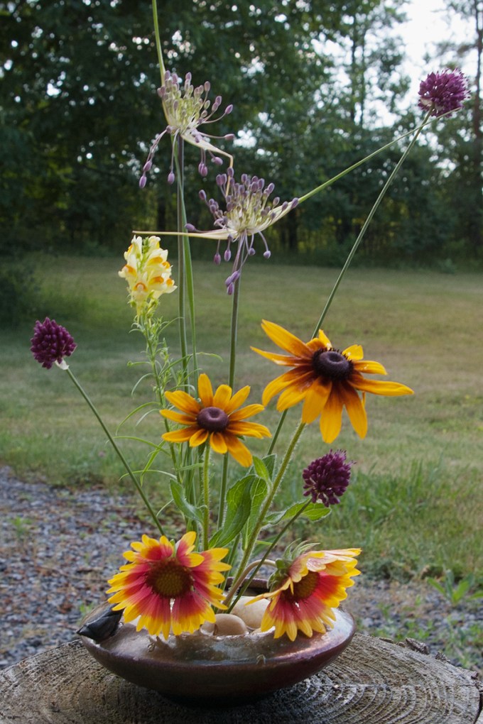 Wow, your summer seems to have arrived so quickly after your late spring! My Echinacea are only just opening. Very pretty pictures Chris. I love that garlic flower in the ikebana vase. ๐