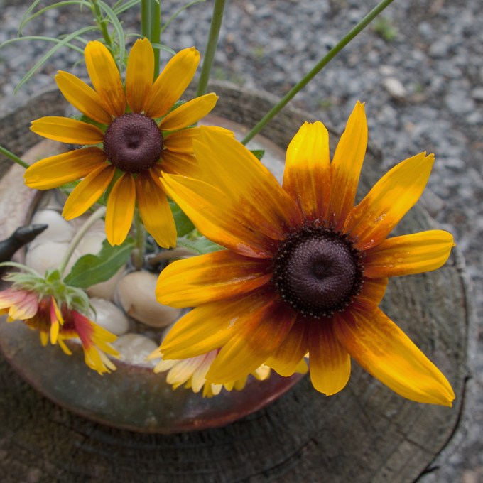 Nicely done on all counts! I just received 3 Rudbeckia I ordered by mail but I’m waiting for our temperature to come down before I plant. I had one like yours, called a ‘Denver Daisy’ here, last year and it was a very tough plant. I should have held onto them last winter but they got evicted as there was no room in my cutting garden for them when I was planting my cool season flowers.