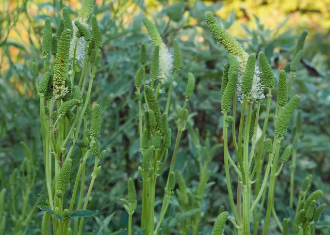 Canadian burnet – Sanguisorba canadensis – normally this sprawling wetlands perennial sends up flower spires four to five feet high. I don’t have a wetlands on the property, though, and this year they’re just over two feet high but hey, still looking good I think.