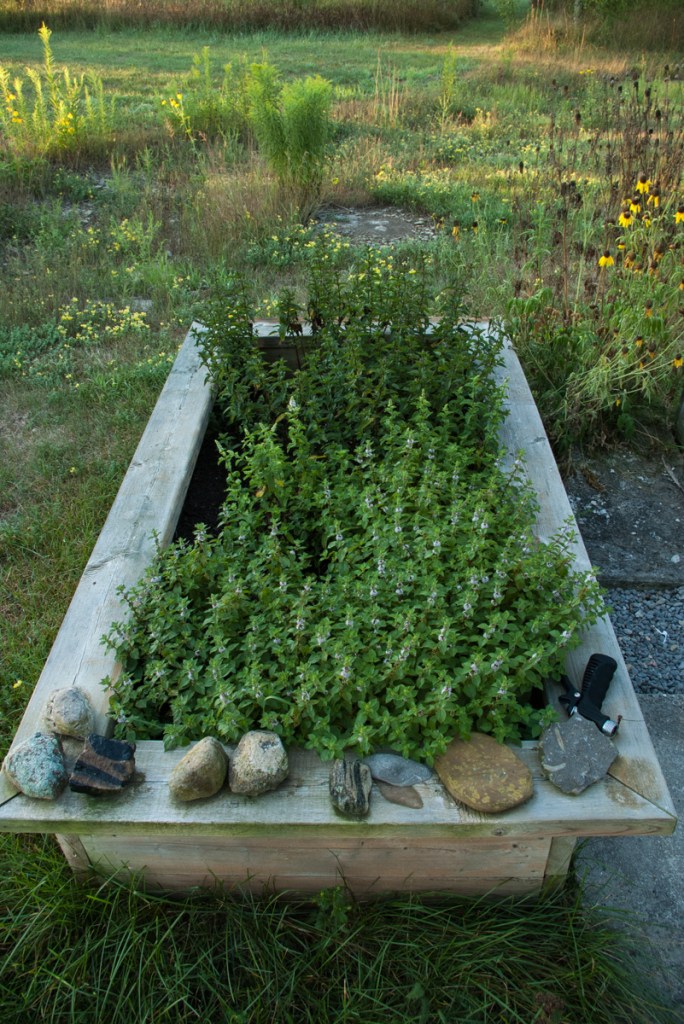 The water is a bit murky – came from a rain trough since our well is still at a very low level. You can see the square mint stems.