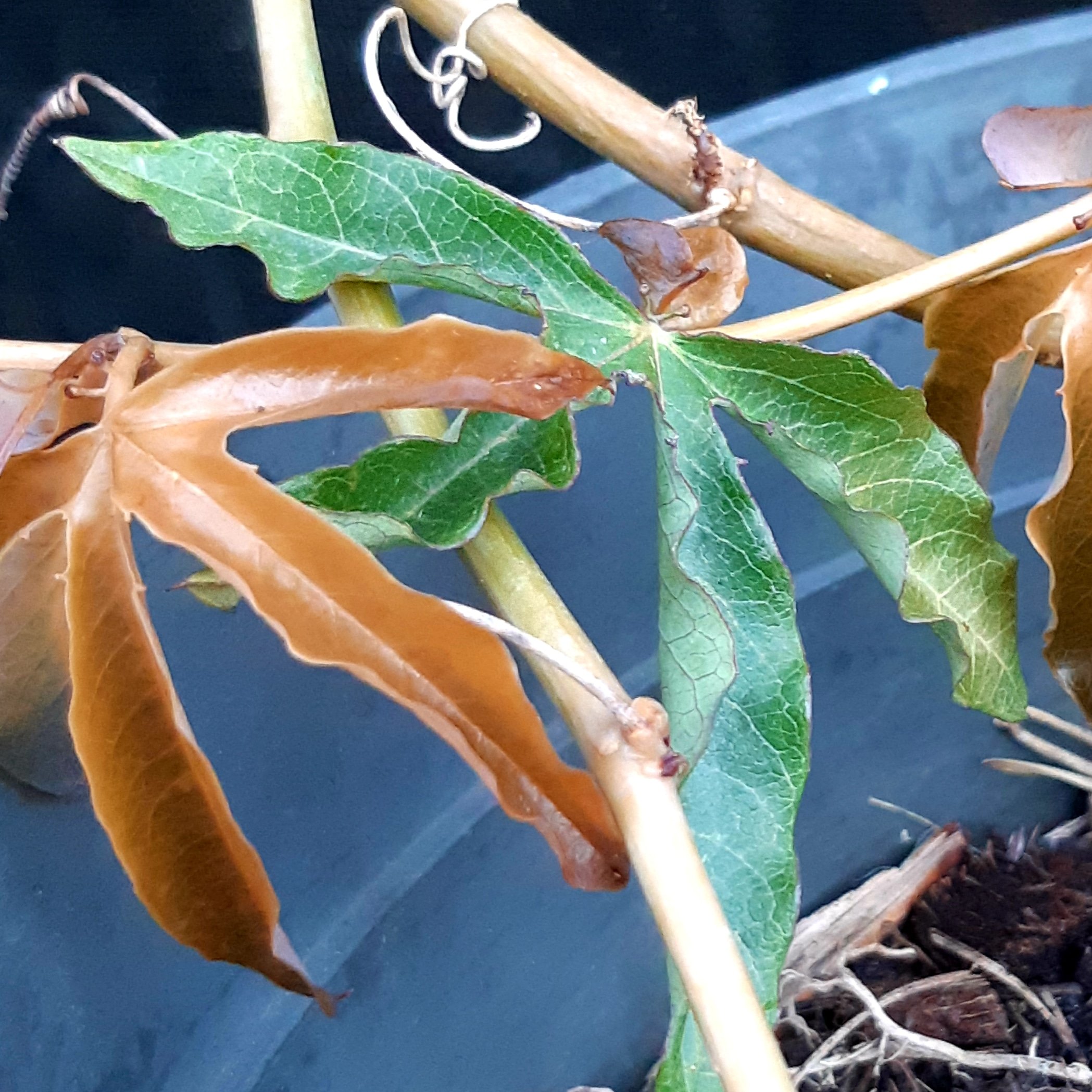 Speaking of hardy plants – I never would have predicted there would a green leaf on this passion flower vine – Passiflora sp – three months after our first frost. AND – it’s growing in a pot!