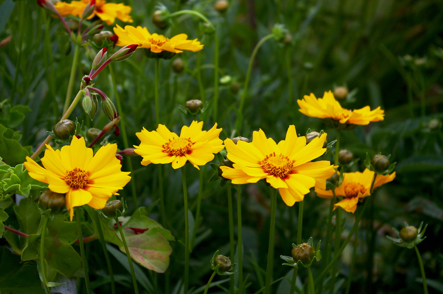 Coreopsis has just started. It self-seeds even more readily that the blanket flower.