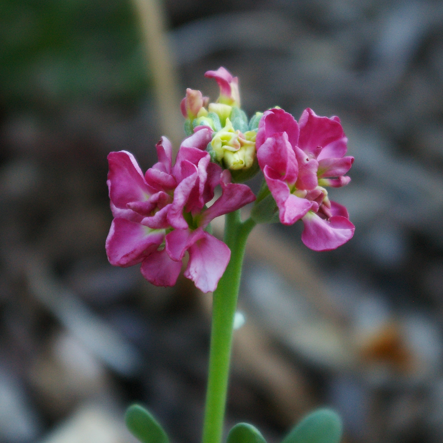 The final official Six – this is Stock – Matthiola incana. I’ve never grown it before but I’ve seen vases of cut flowers with it and thought I’d give it a try. Most of my plants are nowhere near blooming yet, but this little guy has started. The seed packet says the colour is ‘Vintage Brown,’ but it looks kinda pinky to me eh? I just discovered this flower is in the cabbage family Brassicaceae – which makes me wonder if they will attract the small white cabbage moth. We shall see.