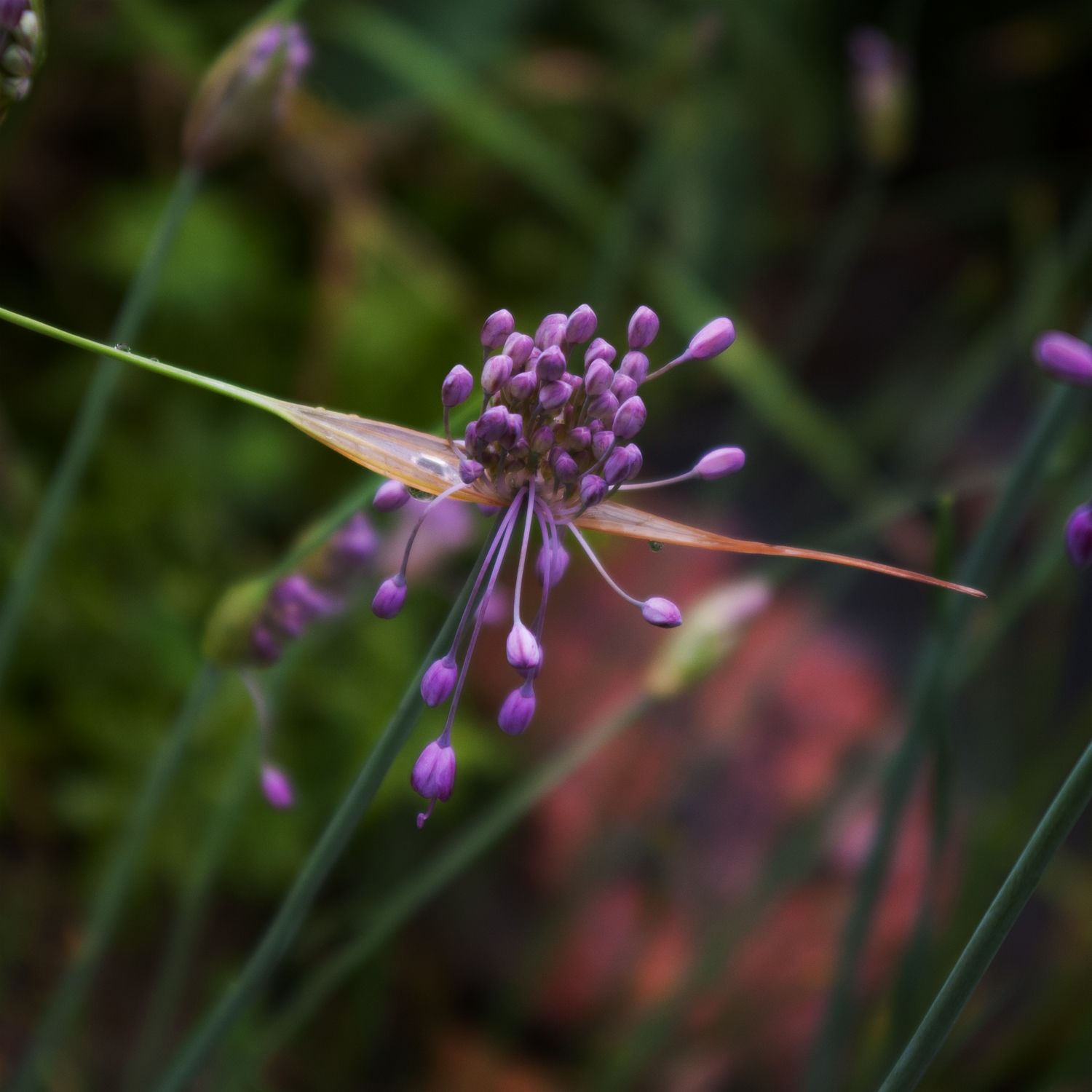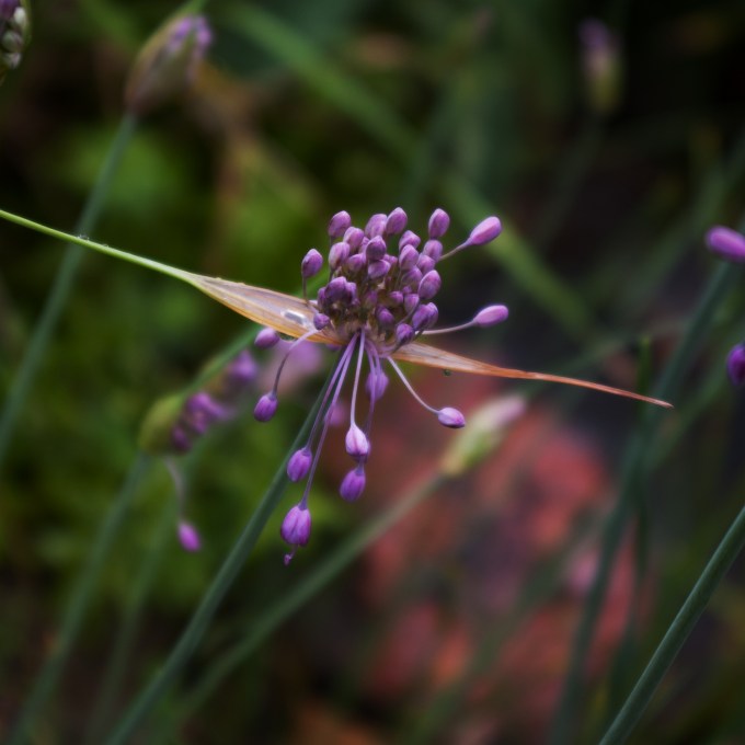 Last week I had Allium cernuum – nodding onion. This week the last of my alliums has started to bloom – Allium carinatum ssp. pulchellum – keeled garlic. It’s also called witch’s garlic, not too sure why since search engines mainly direct me to nurseries or other vendor sites. Grrrr!! Anyway, it has the same pale blue/mauve colour as nodding onion (although my main patch has had the white version pop up from time to time) and a very distinctive shape. It self seeds quite readily.