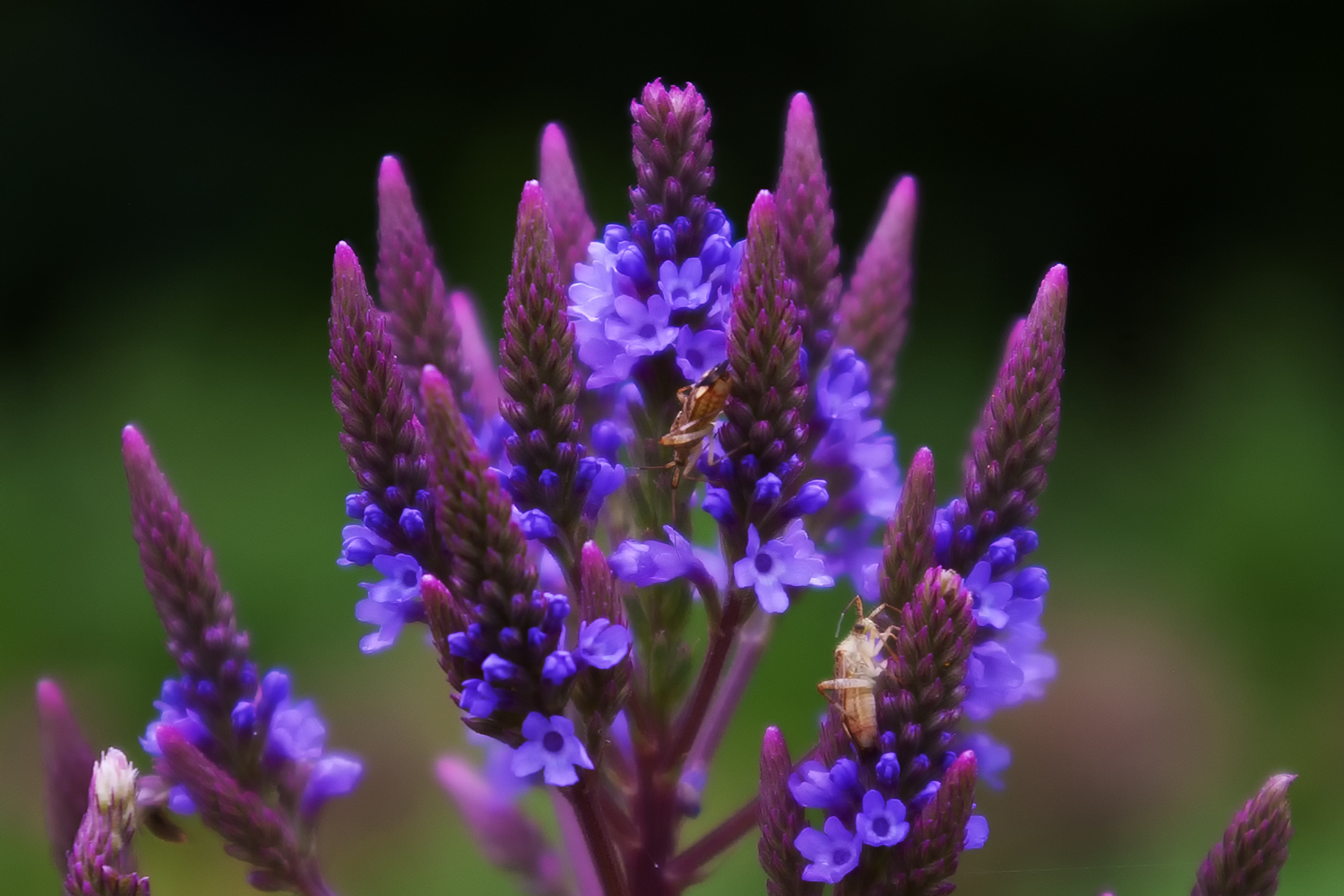 I think the Verbena looks hastataish too. I love the colour contrast of the unopened buds, although that grasshopper is keeping a wary eye on you.