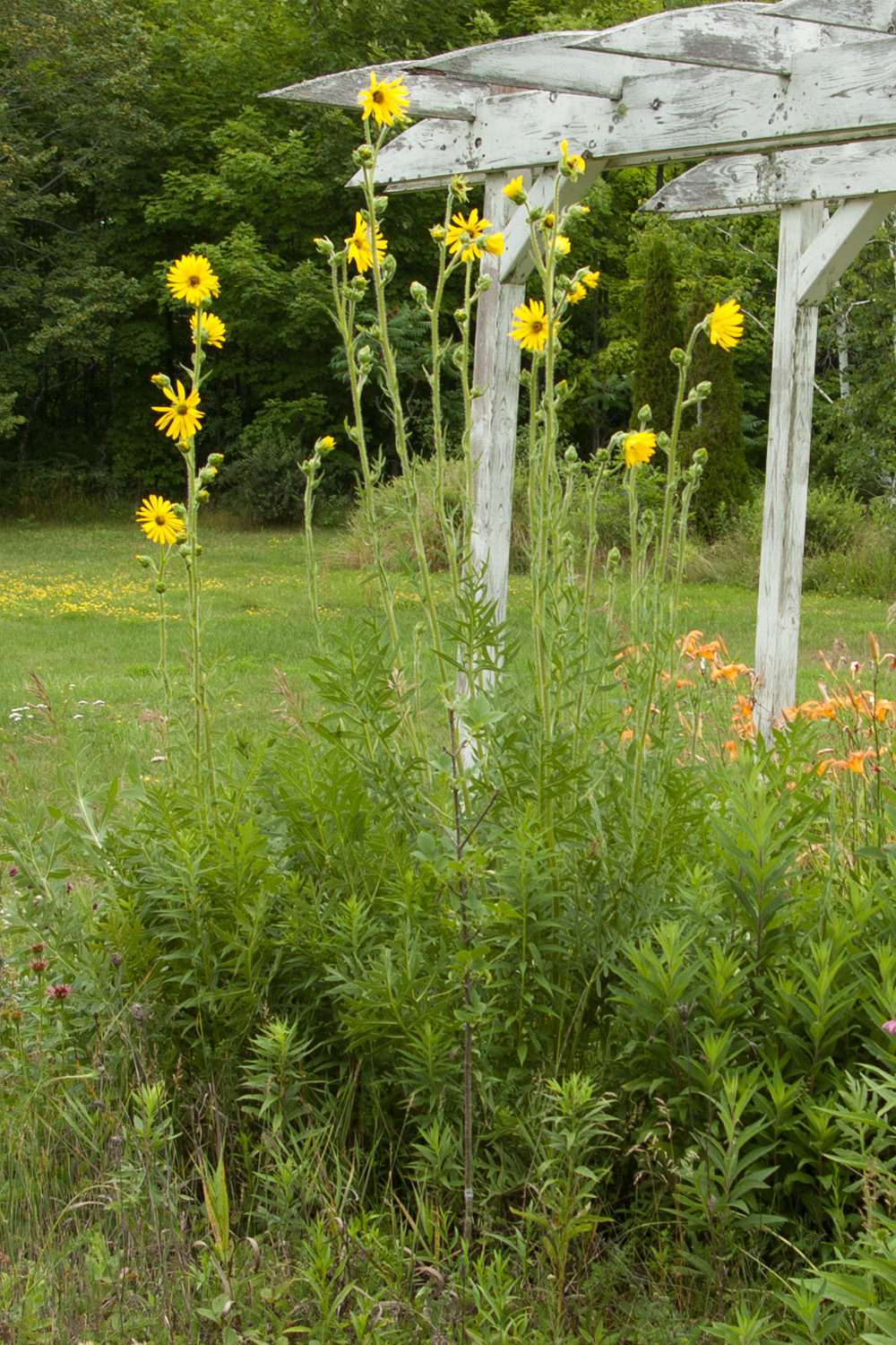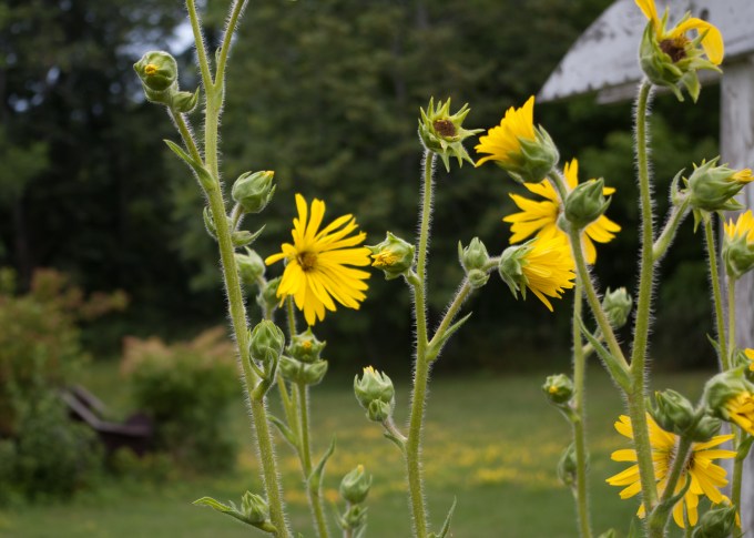 A native perennial I’ve loved since the moment I heard about it is the Compass Plant – Silphium laciniatum. I think my attraction was originally to the common name and then its striking height. It grows to about eight feet high in my garden some years, and its large basal leaves are said to point mainly north and south, to catch as much direct sunlight as possible. The leaves take up a lot of space! Although it’s said to have a long taproot, and is hard to transplant (I started mine from seed), I’ve found it to be not extremely drought tolerant. This is a great plant if you’re looking for a striking, architectural perennial, and have at least a square metre (about 10 – 12 square feet) to spare, in full sun, in soil that remains moderately moist to dry – just not too dry!