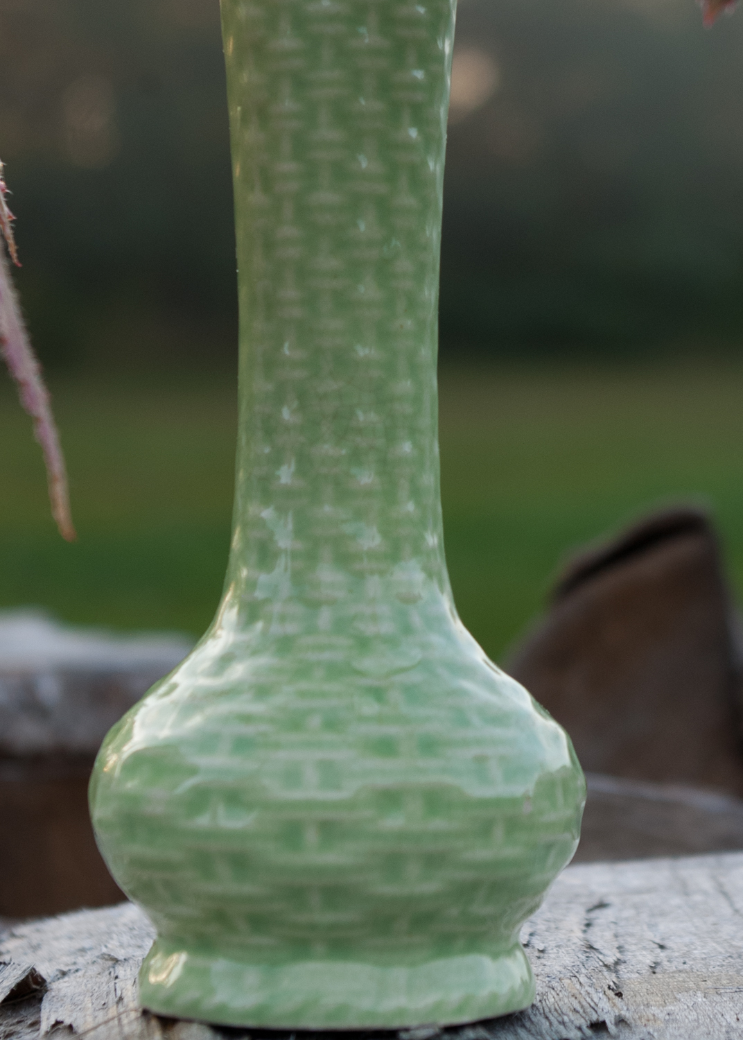 2. The vase is beautiful. It looks like the Celadon glaze that I love. I’m taken with the green Zinnia, too. All of the colors work so well together, and your morning mist really does provide a perfect background.