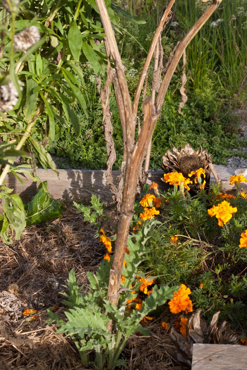 October 5 – dead stalk, but new side shoots have appeared. With a lot of mulch and winter protection they may survive the winter…