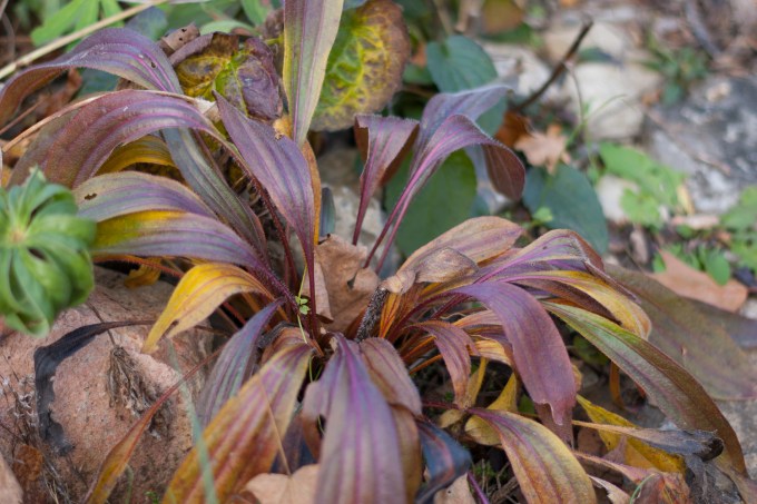I loved seeing those geranium leaves. We have a native geranium whose flowers are tiny: perhaps a quarter inch across. Long before I put two and two together, I would notice their tiny little leaves turning the same colors as yours. They were so beautiful, and finally I figured out that they were Geranium carolinianum, which manages to make it all the way to your neighborhood.</a.