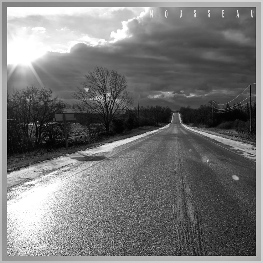 1. The difference between the two images is interesting. In the first, the sun and its reflection seem to pull me ‘off track,’ leading my eye to the left. In the second, the road and the shining shoulder (perhaps you call it the verge) beckon, and seem to say, “C’mon! Let’s go!”