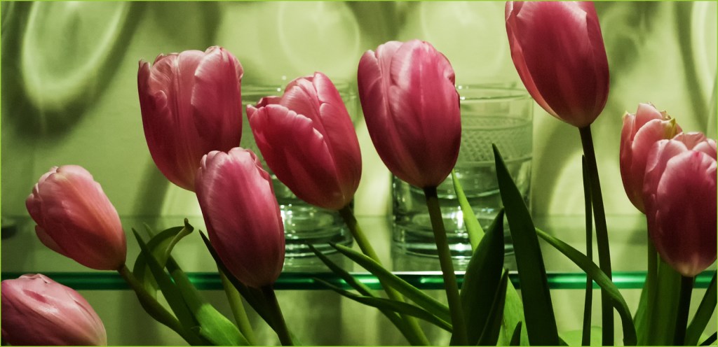 4. I think you did a masterful job of photographing those spectacular pink tulips in front of the crystal glasses. It’s worth an entry into a photography contest should you trip across one of those!