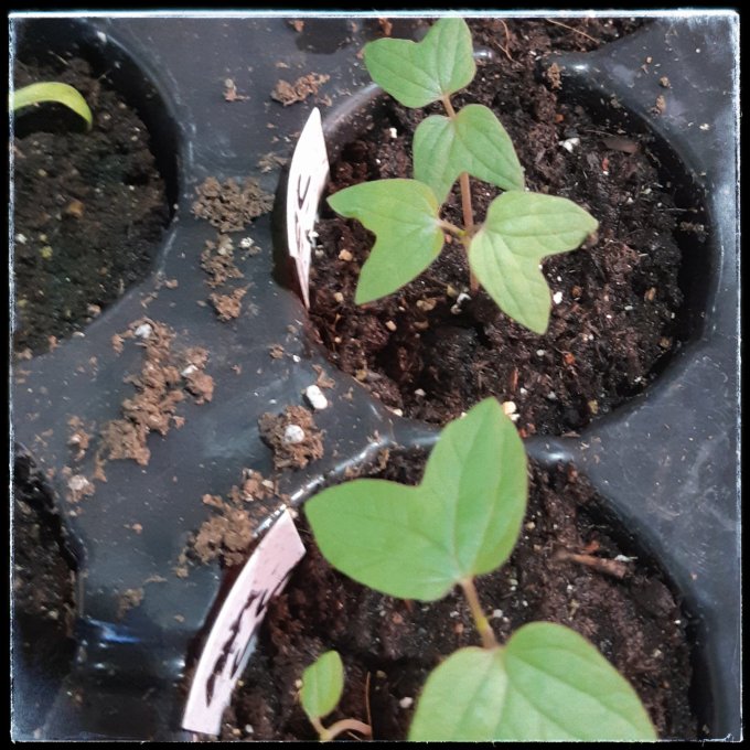 And these Cardinal Climber vines – Ipomoea x multifida – started just 10 days ago, I love how these first leaves look, so similar to morning glories, another climber in the same genus: