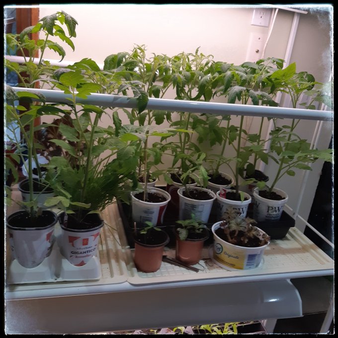 I’m really happy with my seed starting this year. Almost everything has come up as planned, and the only misstep, I think, is once again starting the tomatoes way too early. These were started on March 13, which is 10 weeks before an anticipated planting date of May 22. I started them about three weeks too early, I’d say. Note to self…
