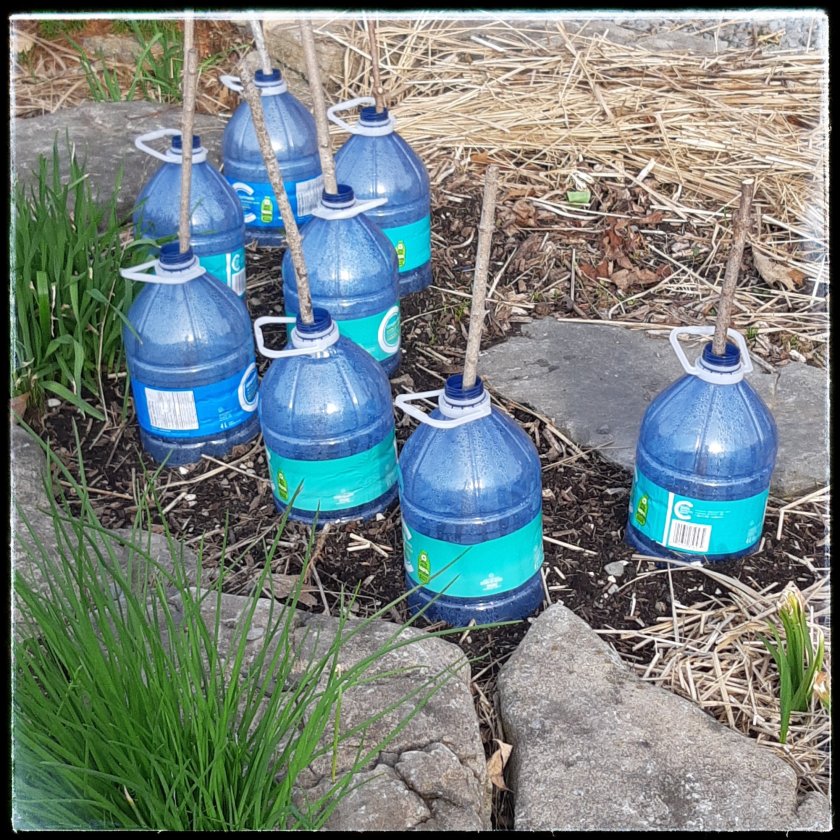 End of April, all of May – the busiest time of the year for gardeners in Ontario. We’re rushing like mad fools cleaning up and preparing beds for the season, then we’re rushing like mad fools planting everything, trying to take advantage of reputed cool days with enough rain to help settle everything in. I say reputed because it’s not uncommon for spring to depart quite quickly at some point in May, allowing hot, 20 plus degree days to settle in. So I’ve already planted some cool weather greens ( lettuces in my DIY cloches shown in the feature photo,above, spinach and a first sowing of snap peas) and started to harden a few things off, like these Ranunculus. I started them in the tray on March 31 and I’ll be planting them out late next week, after gradually getting them accustomed to sunlight and cool nights.