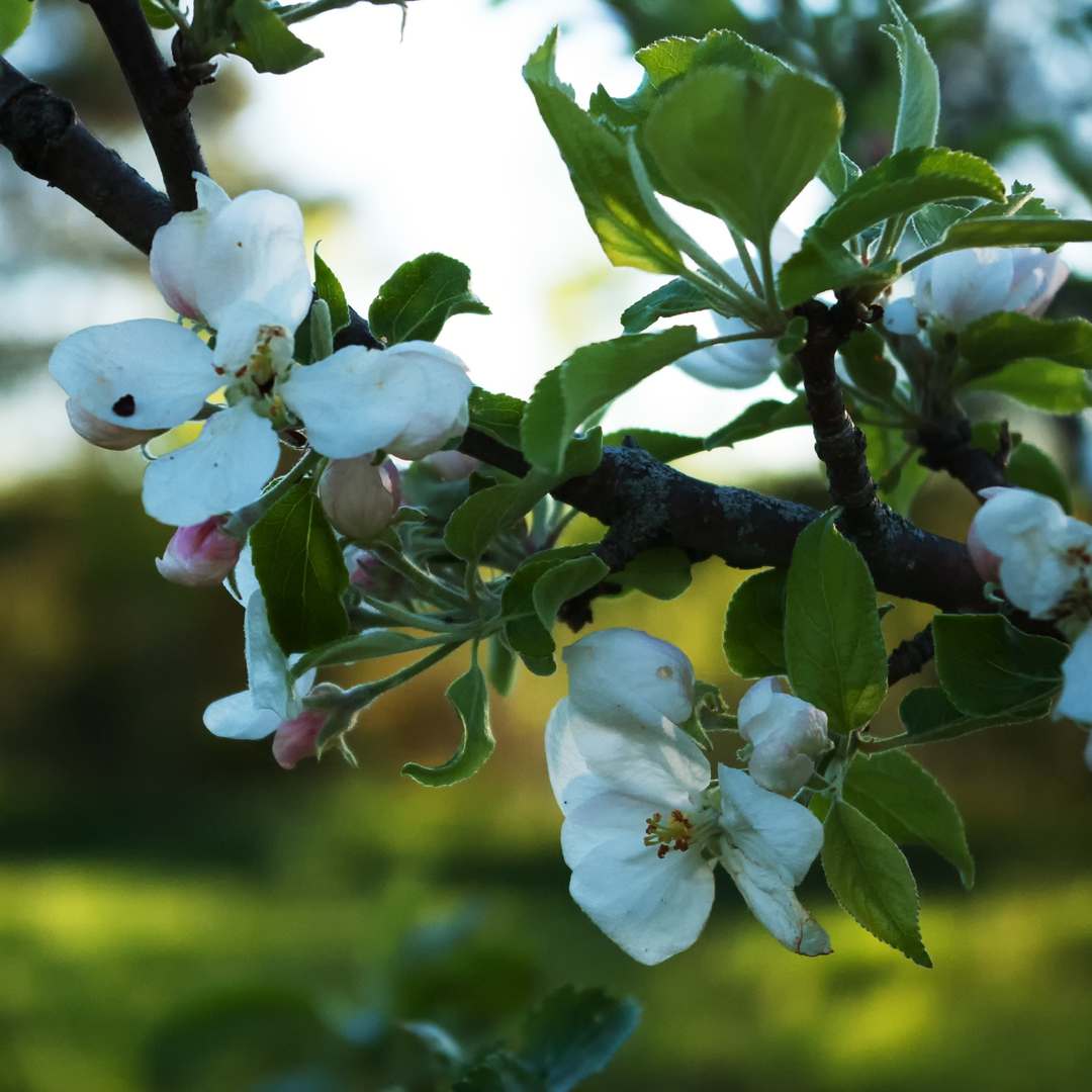 The second thrilling thing is a small apple tree, and its blossoms. There’s a small, meadowy section at the back of the property where, years ago, I would toss the odd apple core. I noticed this tree a few years ago but it’s never bloomed. Until this year! It’s thrilling, but a bit sad since there are no other apple trees in bloom nearby, so, no apples. Even sadder since rabbits or mice or voles decided to chomp away at the trunk this past winter. If it survives the year I’ll prune it next winter and plant another…