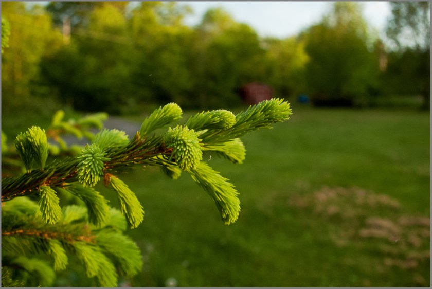 The blue spruce may be a cultivar selected for intense spring colour, I’m not sure. But no filters added, so yes, it’s very intense!