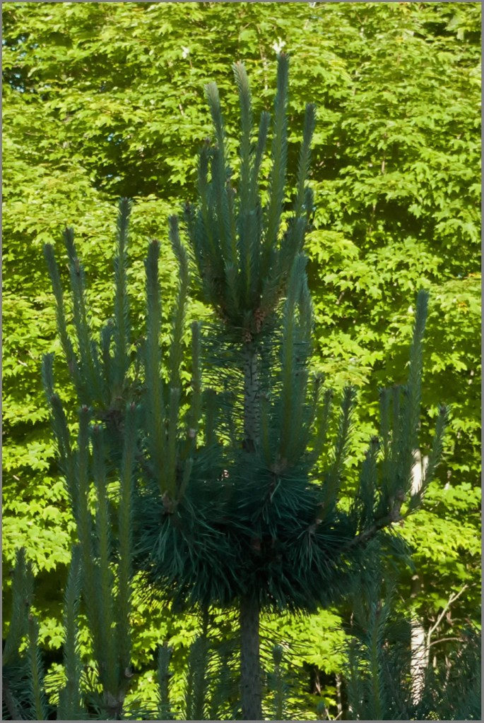 While there’s definitely something magical about how bare branches on deciduous trees and shrubs suddenly burst out with fresh new leaves every spring, the slower, almost sensual emergence of new needles on evergreens is slightly different. It engages an extra sense. As well as sight (look how beautiful the new needles are, how bright the colours are…), there’s also the possibility of touch (soooo soft some of them are…).
