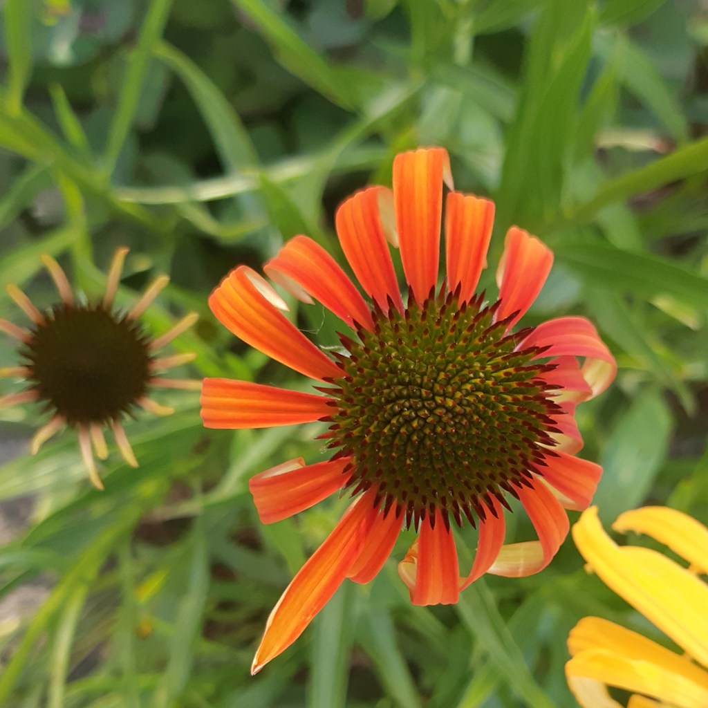 The last two are crosses of E. purpurea, E. paradoxa (yellow coneflower) and E. tennesseensis (Tennessee coneflower). I was gifted seeds quite a few years ago and they’ve grown into a lovely patch. Pollinators have spread their traits to other coneflowers in the garden, if that’s possible, because I have some interesting looking coneflowers popping up in a few different spots now. I’m loving how some are yellow, some are orange and some are almost red.