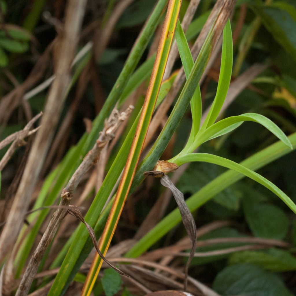 I was wandering about the garden the other day, moaning to myself about how unappealing one particular flower bed is at this time of year, when I noticed something peculiar was happening on a daylily (Hemerocallis) flower stalk. After they finish flowering, I generally let the stalks stay where they are instead of bending over and cutting them back – much easier to wait until they’re fully brown when they can be simply pulled out. (I use the stalks as a mulch in my raised beds, chopping them, into small pieces, or not.)