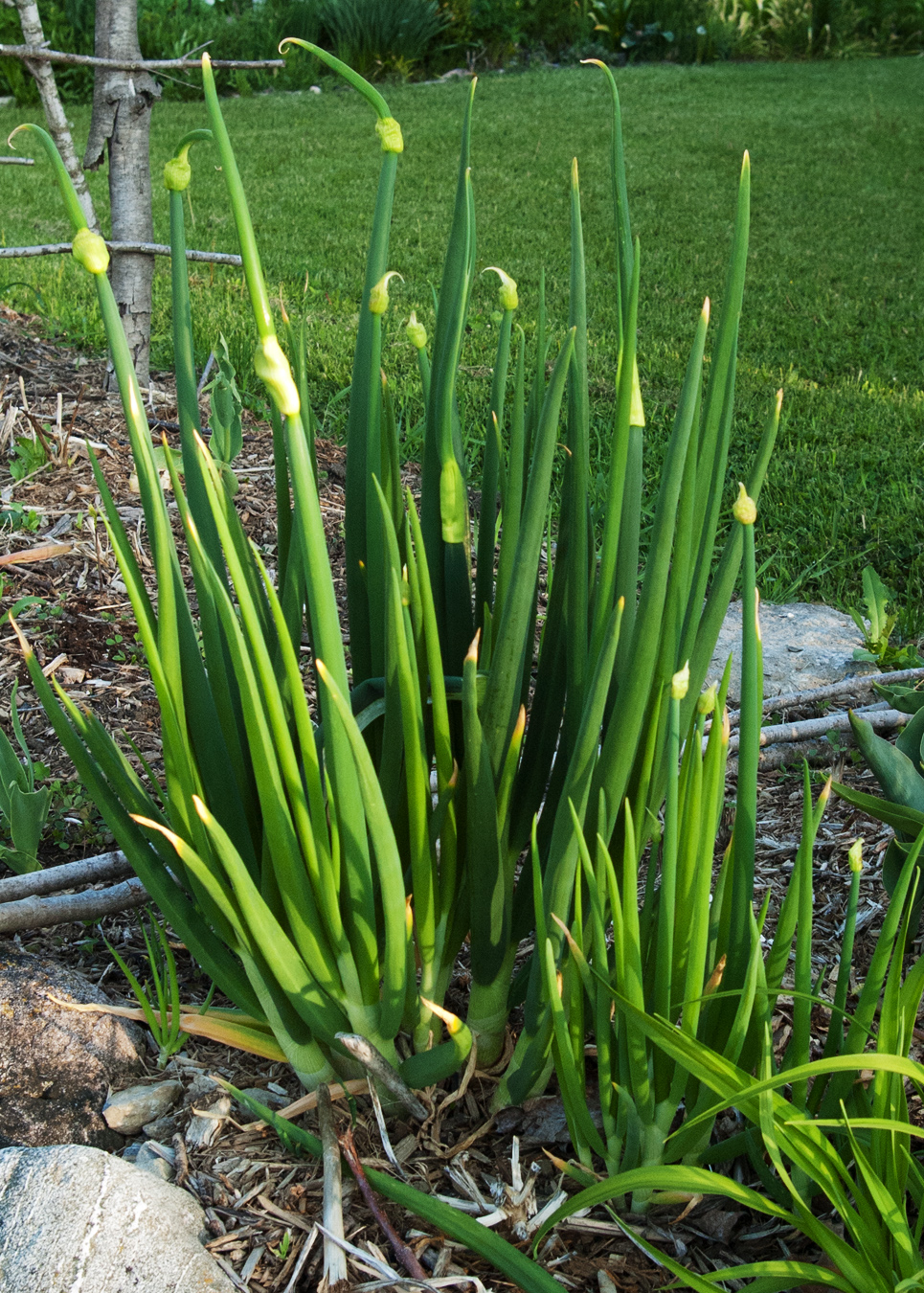 Turning to the kitchen garden, the Egyptian walking onions I planted last spring are living up to the name. The main clump is really large, and the bulbils it produced last year have transformed into several new clumps.