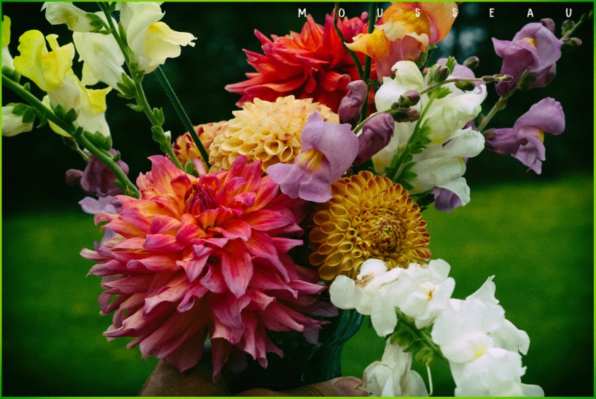 I think I love the dahlias because of the color and the form as they open and fade. Your vase is an explosion of color…beautiful!