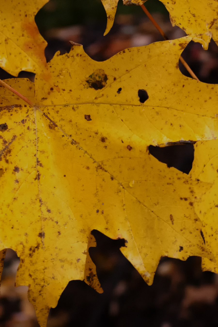 Even when the display some wear or damage (sometimes because of that display!) the leaves of autumn can be as appealing as the color-filled trees. These are lovely. I especially like the sugar maple.