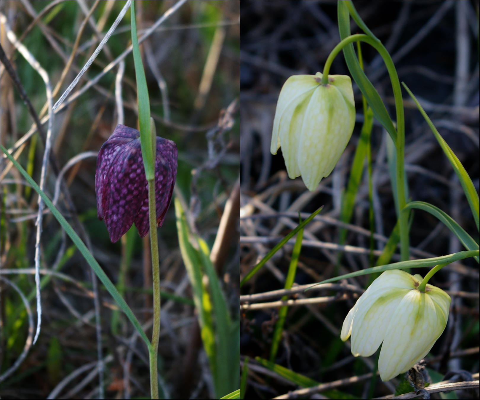 Fritillaries don’t do that well in my garden. I’ve planted F. persica and F. imperialis and although they bloom the first year, that’s about it. After that it’s just year after year of foliage with no blooms. F. meleagris, on the other hand, do bloom year after year, even if not in the same spot as where the small bulbs were planted. Many are familiar with the checkerboard pattern of the purple Snake’s Head fritillary, but they also come in a creamy white.