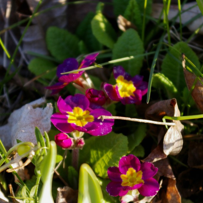 Also starting to bloom are primroses. I have a load of Primula veris, the one with yellow flowers, about to open. They seem to like conditions here and are self seeding all over. First to bloom though is this purply reddish flowering cultivar I bought at a grocery store several years ago – nice to see it reappearing!