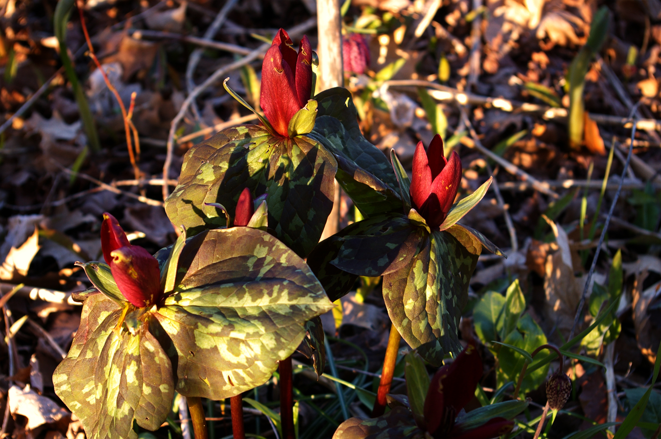 2. Triliums have very beautiful flowers, with the added advantage of having really interesting foliage. Your photo is very successful at sunset (I suppose). I like the daff. ‘Tahiti’. Here too they do well and are among the first to flower. On the other hand they are always nibbled by slugs or snails! ? Madness!