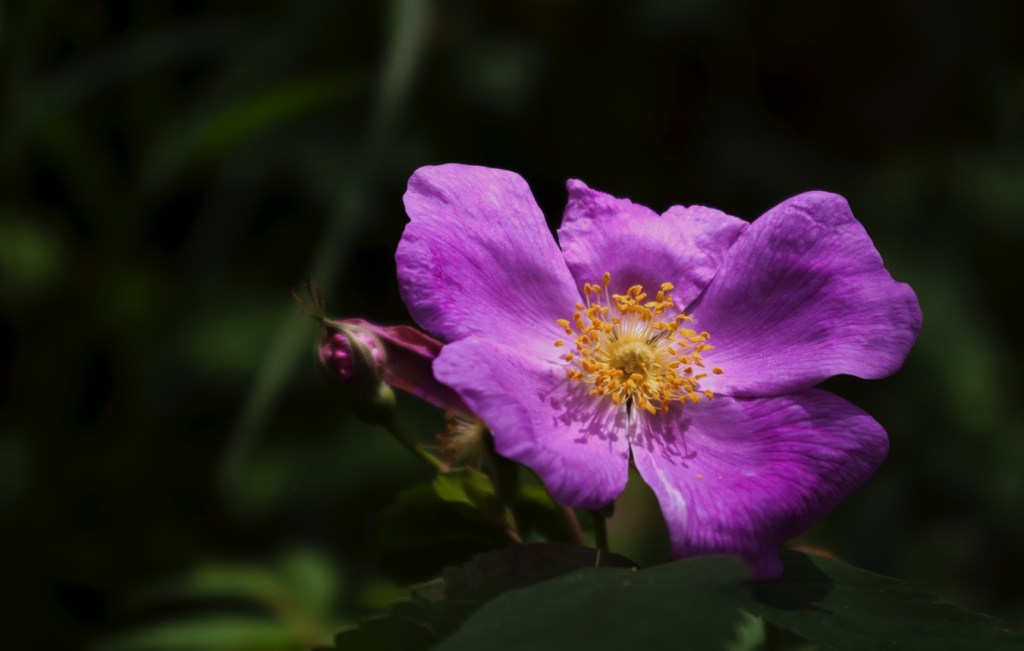 The flowers should magically transform into small rose hips later this summer, and the shrub spreads by suckering, I’ve read, so likely not ideal for a cultivated flower garden. It seems ideal where I’ve seen it growing wild – at the side of roads in semi-shade. I’m going to help this little one along, clearing away the buckthorn and wild raspberry that it’s crowded amidst, and hope for a few more blooms next year.