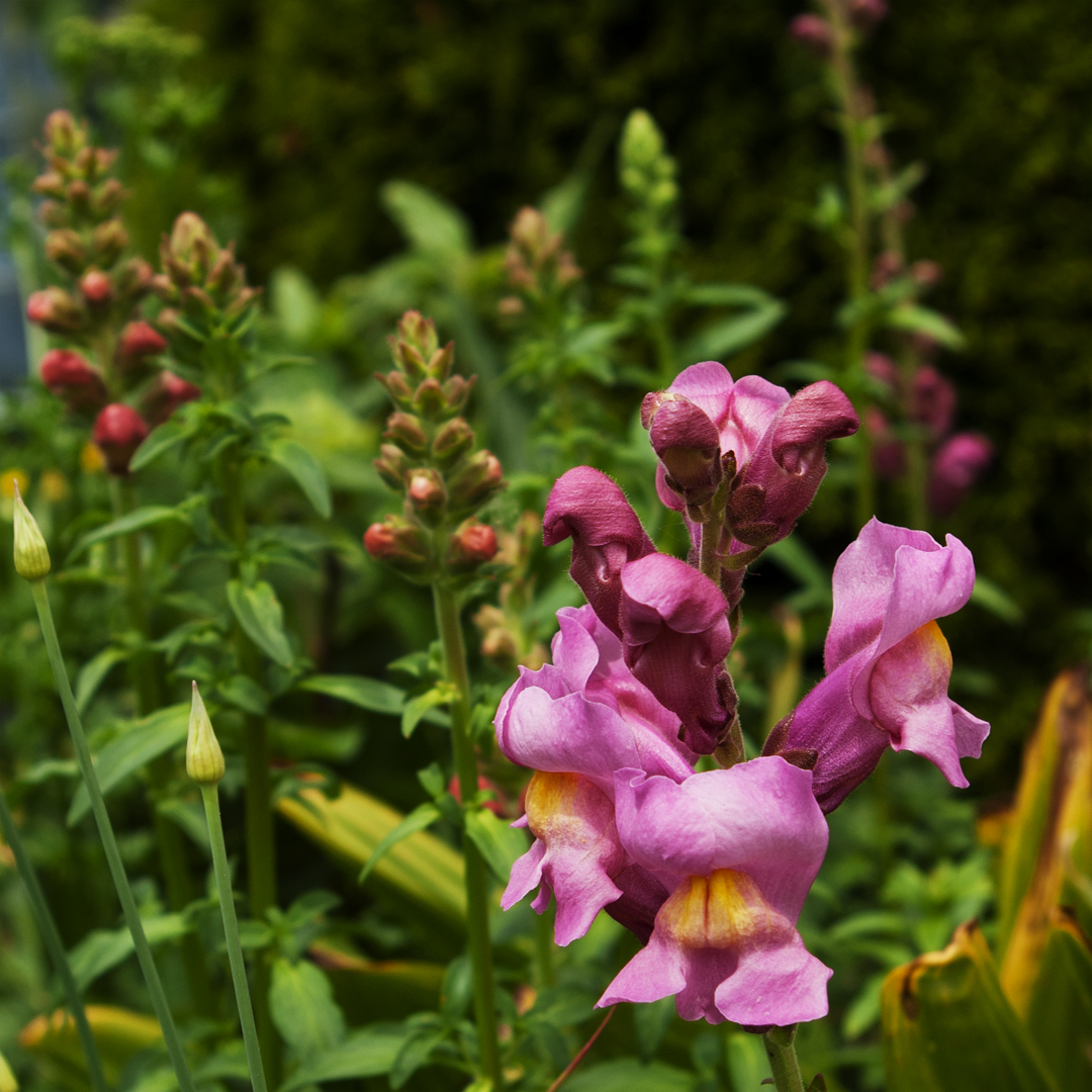 I thought only one or two snaps survived, but currently there are spires with five different colours blooming!