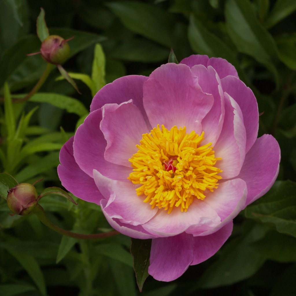 My first thought was to prune off this shoot as it would siphon resources from the ‘tree’ and make a generally untidy looking plant. But at the tip of this new shoot was a bud, and it appeared to be expanding as it should, with a few ants crawling over it as they do with healthy peony flower buds. So I let it grow, and late last week it opened into a pleasant pink single peony flower.