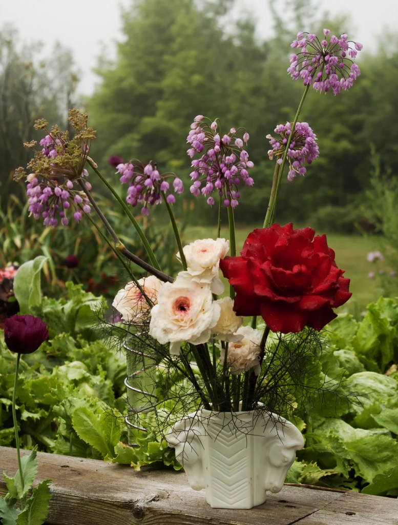3. The allium looked so blue in one of your pictures, Chris, but is it really purple, as in the others? I don’t think I had heard of a Canada Day before – does it commemorate a specific event? The rananculus is so pretty (how much longer will yours be flowering for, do you think?) and combines well with the rose and allium for the patriotic colours. Love the little vase too