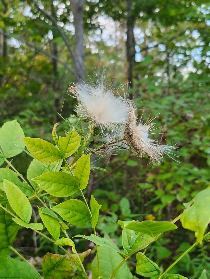 I let thistles bloom and go to seed way back in the yard so small birds (goldfinches, mainly) can use the fluff to insulate their nests, but I somehow missed cutting this one back. It’s by the driveway, amongst dogwood shrubs and lilacs. Birds have started pecking away at Echinacea seedheads so perhaps this one plant wont go to waste…