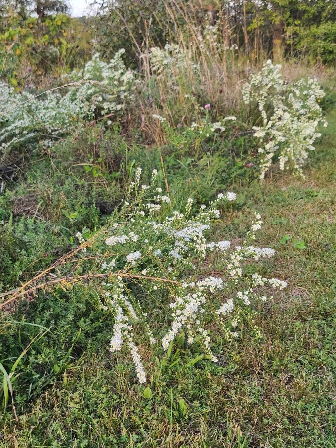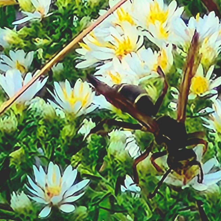 And I know the end is near when this lovely aster, covered tightly with small white blooms and immensely attractive to wasps, burst open.