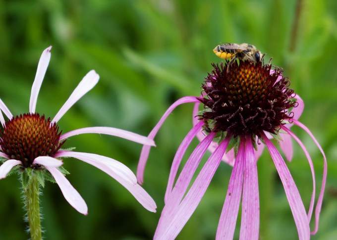 My Apple iPad ID’d the bee as a ‘megachile.’ Cone flowers are so pretty!