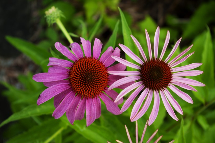 I know…you’ve seen my purple coneflowers before. More than once. I can’t help myself though…Echinacea is the backbone of my summer garden, loved by me, bees and butterflies. Mostly I have E. purpurea in various shades of purple but also the white flowering variety and Pale Purple Coneflower – Echinacea pallida, which self seeds as readily as its cousins, blooms earlier and is generally much taller with narrower rays/petals.