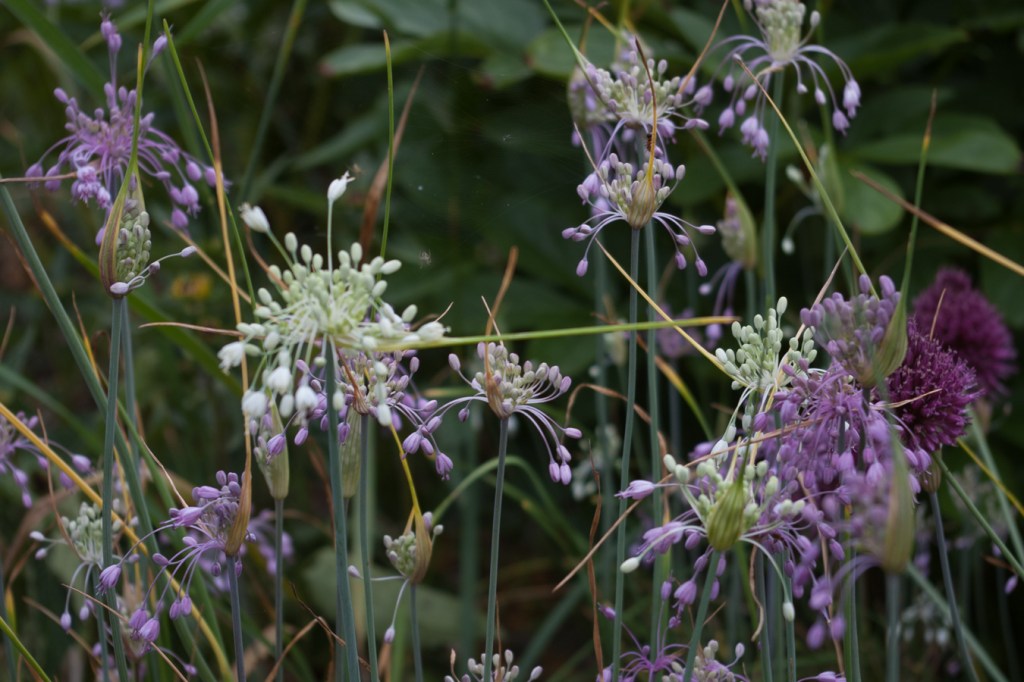 One of my favourite summer Alliums is Allium carinatum – aka keeled garlic. It’s short and fancy, comes in white or mauve, and looks good either up close and personal or en masse, which is easy to accomplish since it drops seed quite reliably. Very drought tolerant.
